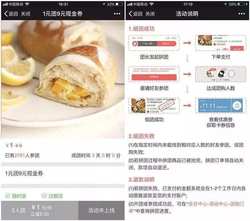附加一波“拼团抢券”彩蛋:以1元吃9元枣糕,或1元抵9元用,可以换购店内任意产品!限量500份即刻被强光,近3000人参团,核销率高达95%!!